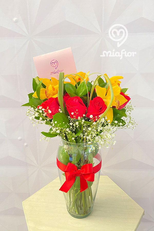 Rosas preservadas y Orquideas.
