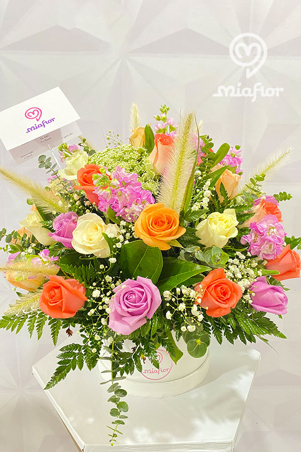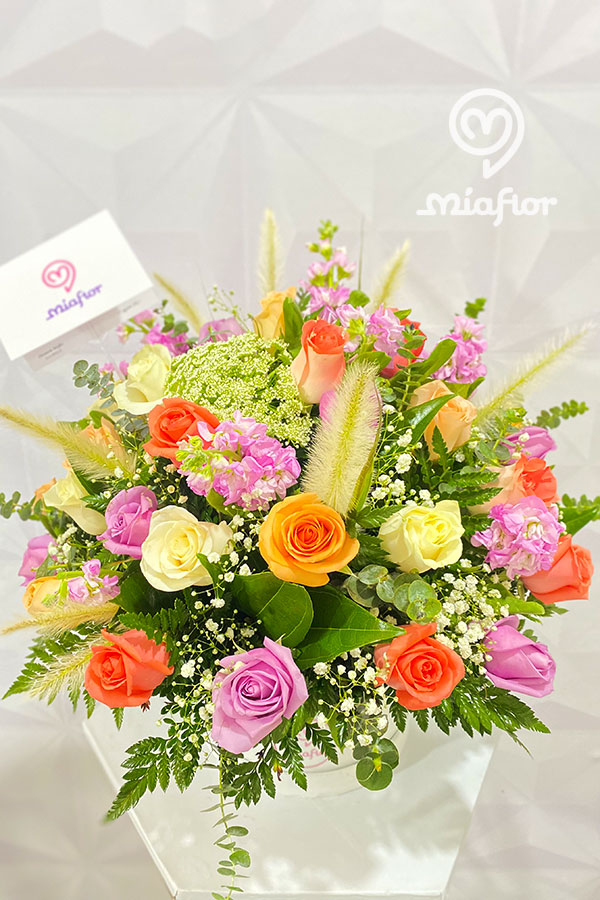 Rosas preservadas y Orquideas.