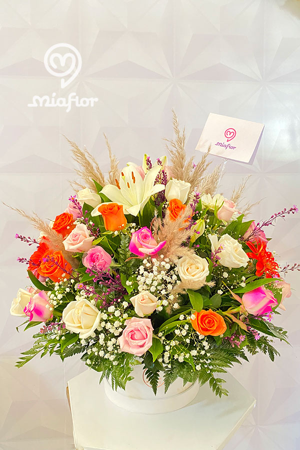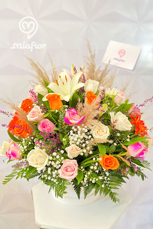 Rosas preservadas y Orquideas.