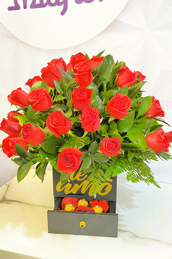 Rosas preservadas y Orquideas.