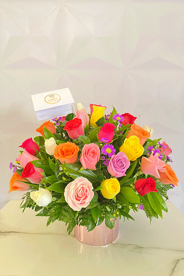 Rosas preservadas y Orquideas.