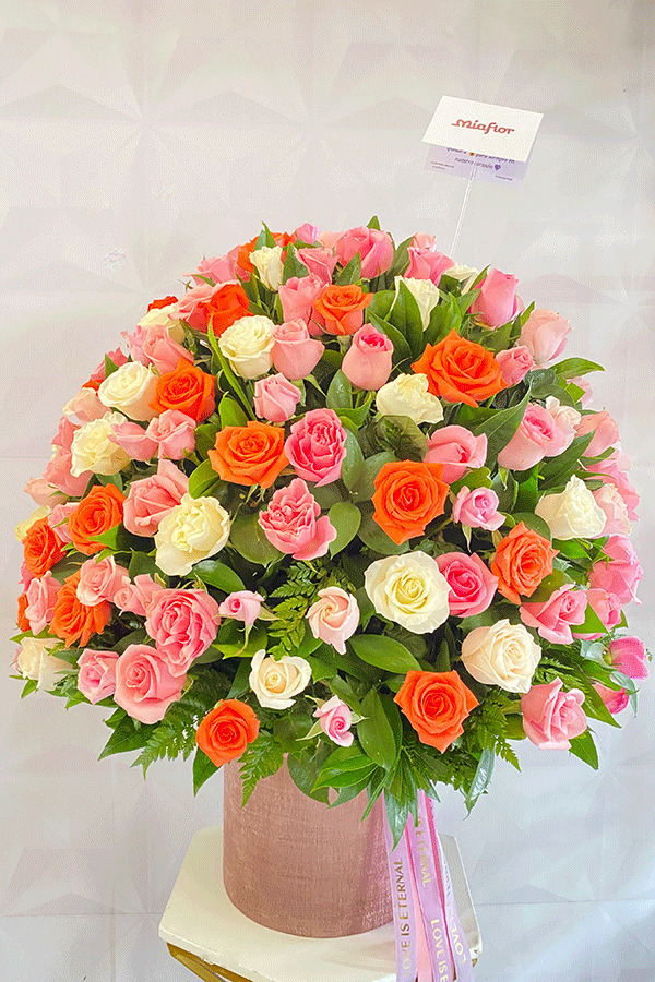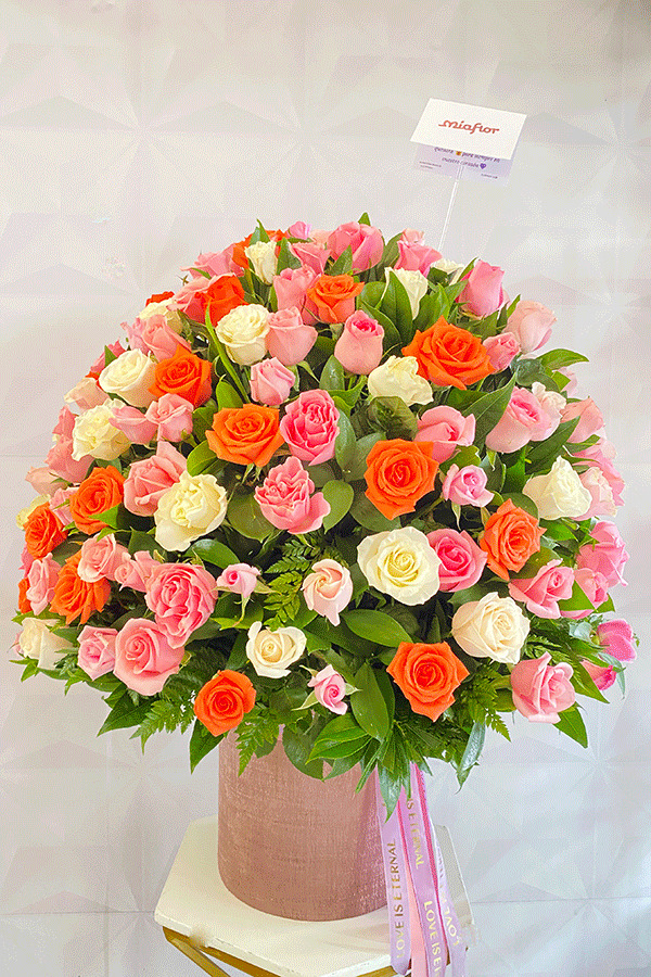 Rosas preservadas y Orquideas.