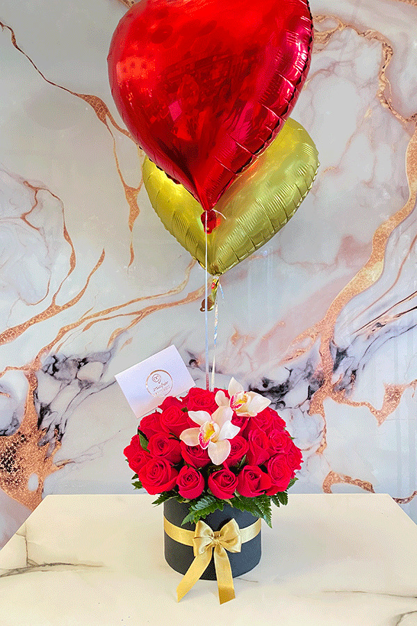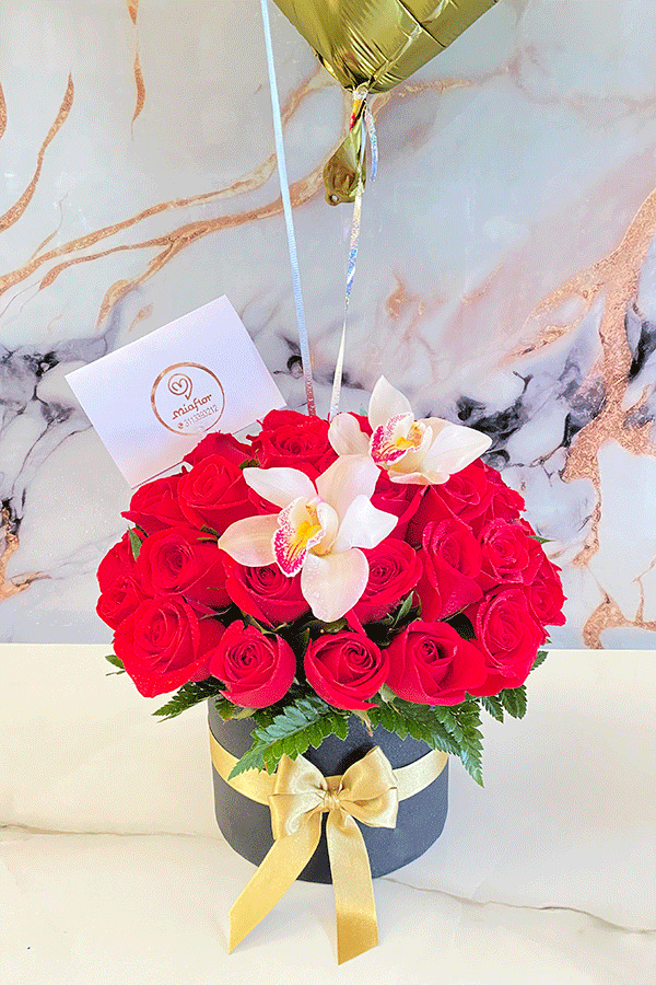 Rosas preservadas y Orquideas.