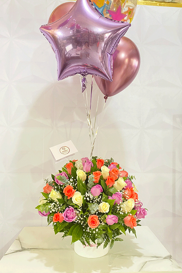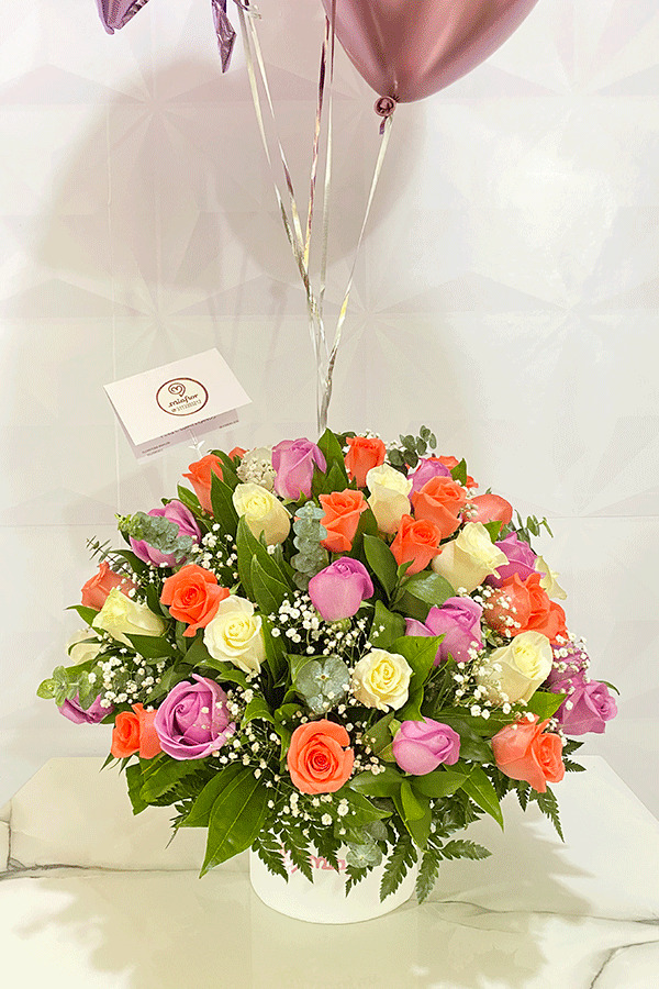 Rosas preservadas y Orquideas.