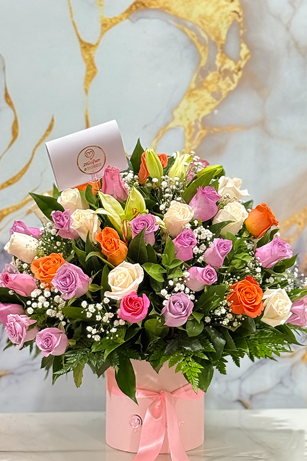 Rosas preservadas y Orquideas.