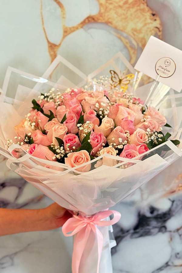Rosas preservadas y Orquideas.