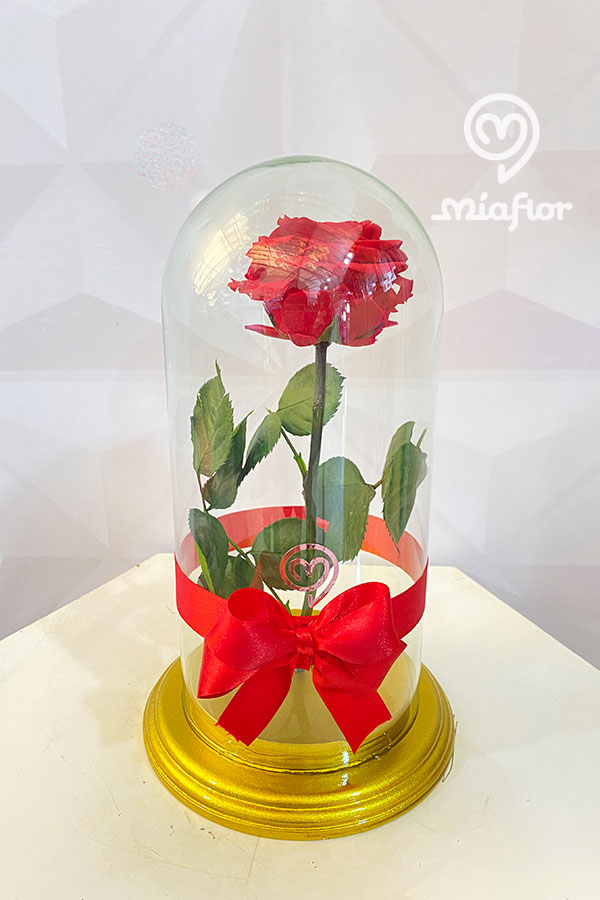 Rosas preservadas y Orquideas.